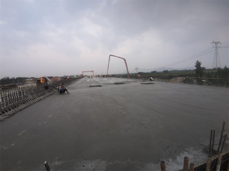 2020年9月17日7:00-18:20,由新寧項(xiàng)目部負(fù)責(zé)的興隆莊特大橋第13聯(lián)左幅第2節(jié)段現(xiàn)澆箱梁混凝土澆筑完成,C50混凝土澆筑總量為742m³。
