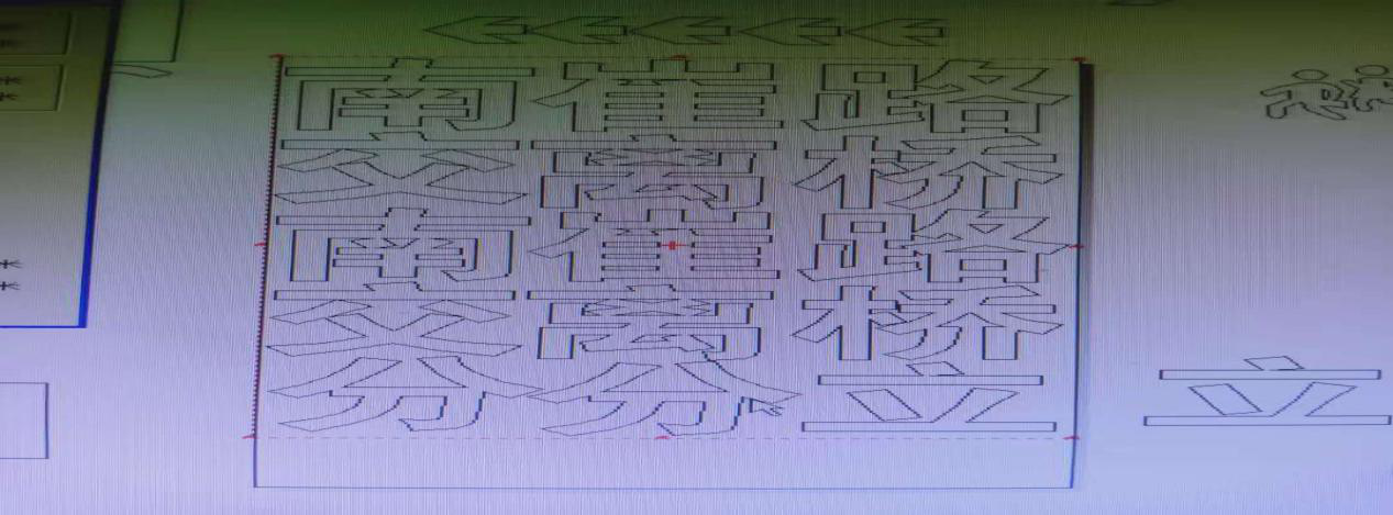 這樣的漢字是八角指示牌的內(nèi)容。正好這批任務(wù)和另一批警示樁的刻字任務(wù)同時交到刻字室。結(jié)合兩項任務(wù),最終選定了先把八角牌子的內(nèi)容排好版,然后利用字與字的空隙再把警示內(nèi)容加進去的方案。方案送到交安分公司領(lǐng)導審閱的時候,領(lǐng)導給予了我高度肯定和贊揚。這樣,我不但把兩個刻字任務(wù)同時高質(zhì)量圓滿完成了,也收獲了工作的成就感,及節(jié)約帶來的幸福感。