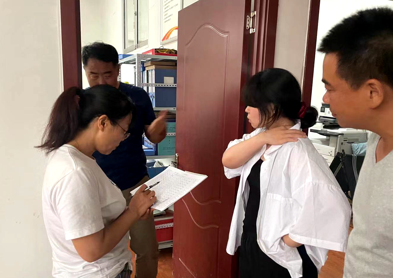 6月30日上午高溫酷熱難耐,盤點(diǎn)人員揮汗如雨,自東向西采取地毯式清點(diǎn)公司院內(nèi)周轉(zhuǎn)物資,然后逐室清點(diǎn)辦公室內(nèi)所有物品。下午頂狂風(fēng)冒急雨深入現(xiàn)場(chǎng)對(duì)項(xiàng)目露天堆放庫(kù)存物資,項(xiàng)目辦公設(shè)備,生產(chǎn)生活物資等逐一進(jìn)行清點(diǎn)核對(duì)。大到拌合站,小到錄音筆無(wú)不是有就必見(jiàn)實(shí)物,所有盤點(diǎn)物品一一清清楚楚記錄在案。