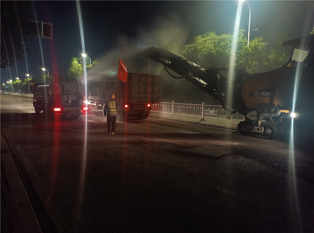 6月17日,開工一個(gè)月,項(xiàng)目部累計(jì)完成銑刨103154.0 m,完成總量的39.4%;完成攤鋪42686m,分別完成總量的28.2%。完成混凝土路面挖除8247米,完成總量的82.1%。