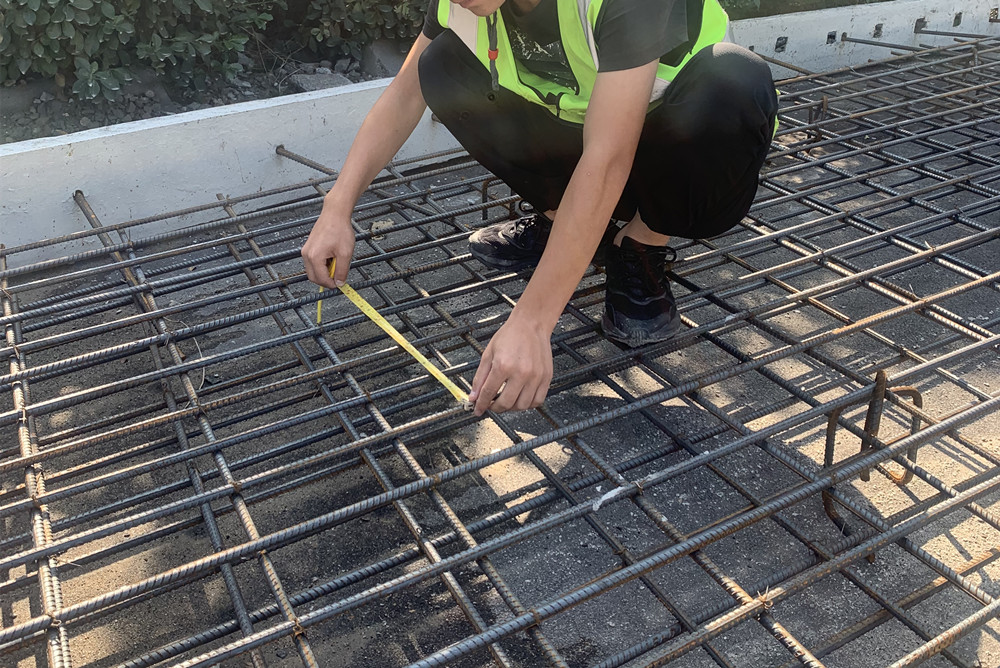 精準(zhǔn)施策,破解現(xiàn)場(chǎng)施工難。世上沒(méi)有兩片相同的樹(shù)葉。對(duì)于G205混凝土路段而言,則沒(méi)有兩根相同的鋼筋,沒(méi)有兩片相同的模板。由于地勢(shì)形勢(shì),本路段全線曲折多變,這要求每一根鋼筋、每一塊模板、每一道刻紋必須精準(zhǔn)。從鋼筋綁扎開(kāi)始,項(xiàng)目部人員便根據(jù)現(xiàn)場(chǎng)測(cè)得的實(shí)際坐標(biāo)一塊板一塊板布設(shè)點(diǎn)位,電腦制圖,測(cè)算每一根鋼筋、每一塊模板的實(shí)際長(zhǎng)寬等指標(biāo)。刻紋時(shí),先行模擬出刻紋方案方能進(jìn)行實(shí)際操作。