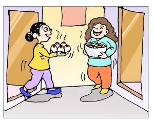 這時候小區(qū)微信群總是不乏熱鬧,有要拿大米換榨菜的,有要用啤酒換花生米的,引來一陣哈哈大笑,結果總是不用換,家里有,需要的來拿。