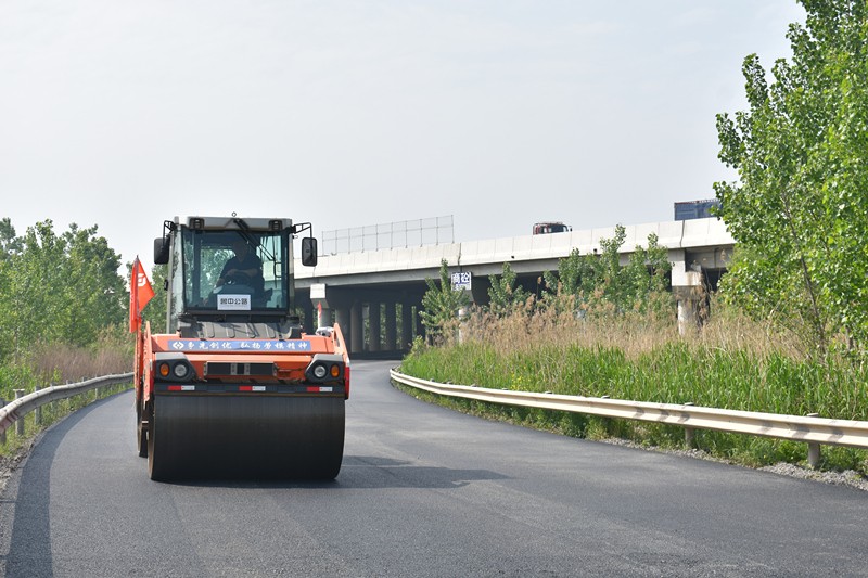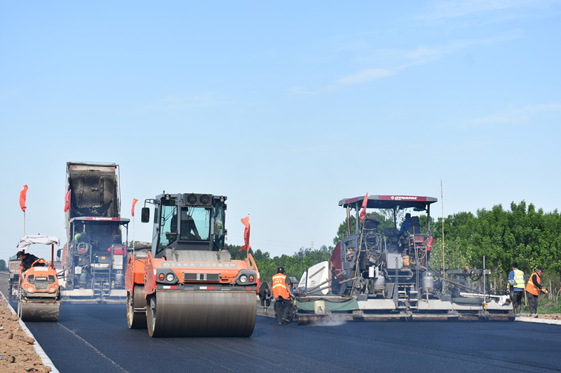 在京滬變更項目下穿劉瓦線施工現(xiàn)場,瀝青路面加高正在緊張的鋪設(shè)中,“剛出鍋”熱騰騰的瀝青料、現(xiàn)場施工人員肆意揮灑的汗水、來回碾壓的施工機械,用奮斗譜寫勞動的意義。